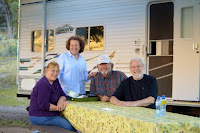 As you know, we meet some of the nicest folks in our travels. A couple of those folks are Shari and Dennis (pictured in the middle) whom we met a couple of years ago when they were parked in the site behind us.  They come at least once a year, and this time were traveling with their friends Carla and Ray.  We were invited to join the 4 of them for a yummy steak dinner one night and stopped by their campfires a couple nights we worked. Always good to visit.